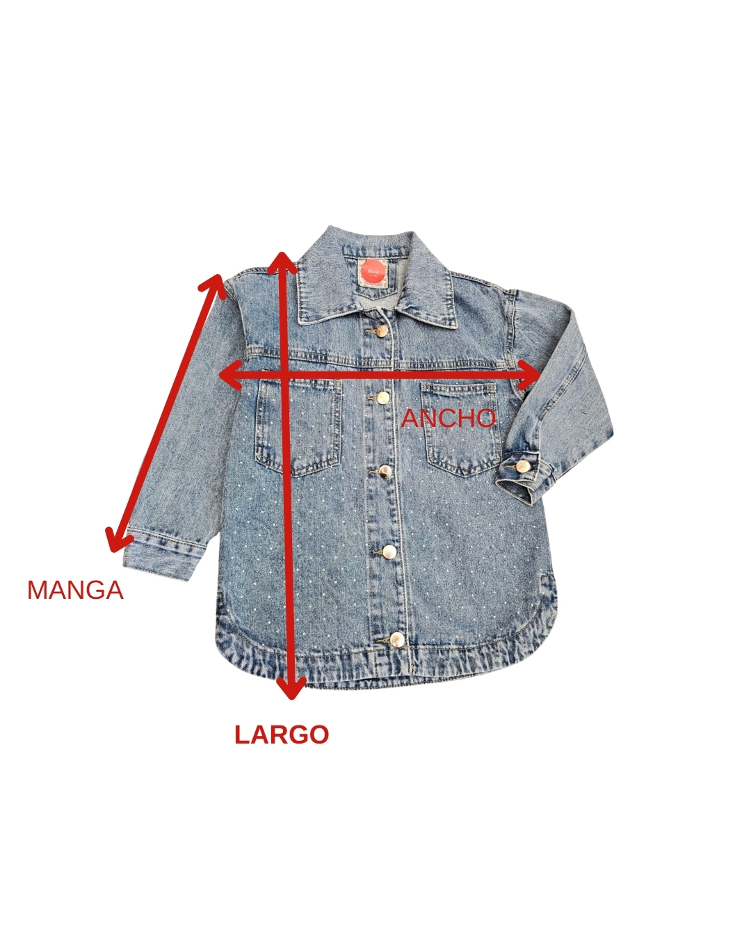 CAMISACO CONFECCIONADO EN TELA DE JEAN DE PRIMERA CALIDAD, POSEE DETALLE DE STRASS EN PARTE DELANTERA Y BOLSILLOS, ESTE CAMISACO ES CANCHERISIMO, NOS ENCANTA PARA HACER MATCH CON EL SHORT SHINY. TE INVITAMOS A RECORRER NUESTRO SHOP DONDE VAS A ENCONTRAR GRAN VARIEDAD DE PRENDAS PARA COMPLETAR EL LOOK.