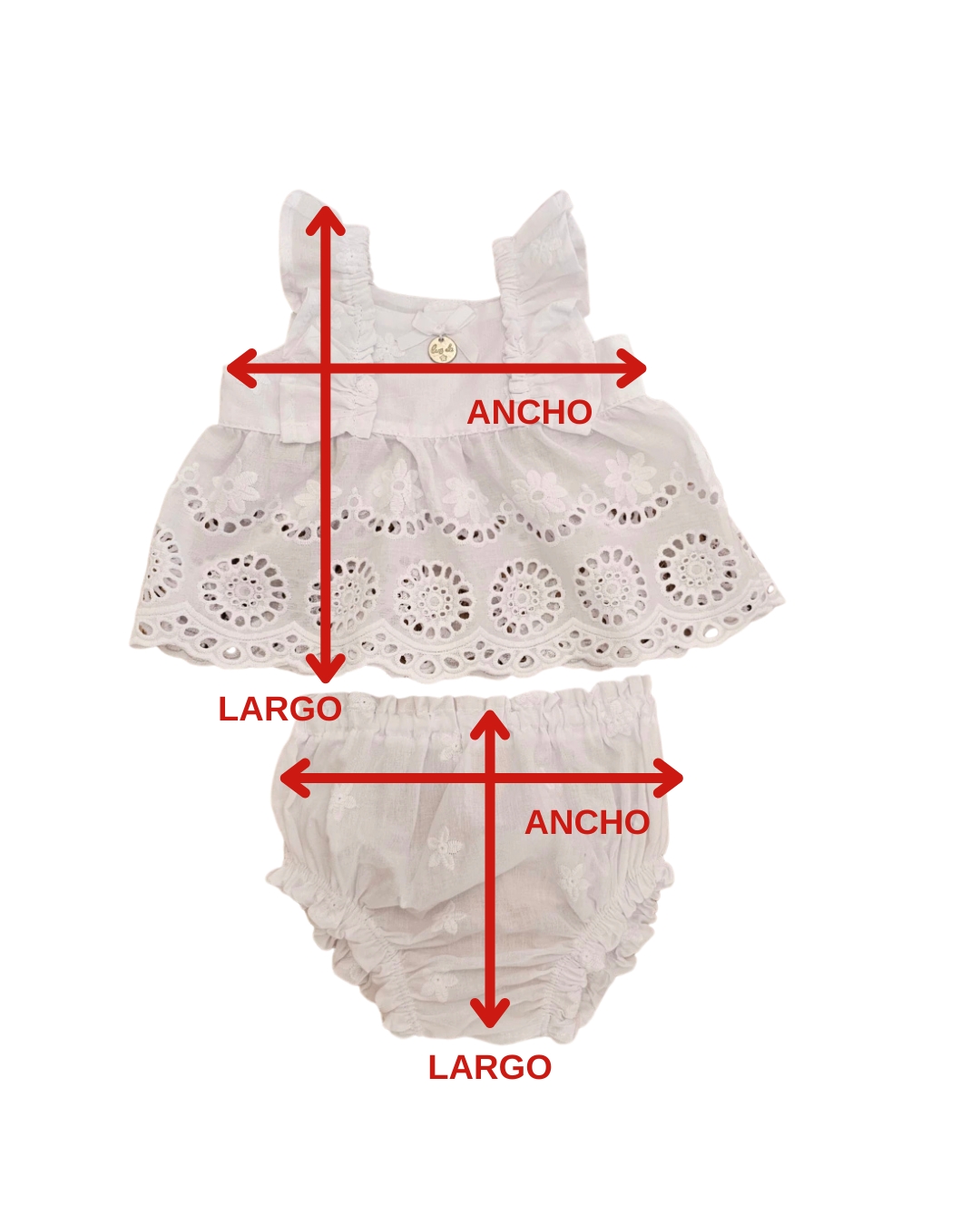 CONJUNTO CONFECCIONADO EN TELA DE BRODERIE DE PRIMERA CALIDAD, POSEE BLUSA CON DETALLE DE VOLADO EN PARTE DELANTERA, BRETELES ELASTIZADOS Y 3 BOTONES EN ESPALDA, BOMBACHÓN CON ELASTICO EN CINTURA Y EN PIERNAS, DISEÑO RÓMANTICO Y ENCANTADOR. TE INVITAMOS A RECORRER NUESTRO SHOP DONDE VAS A ENCONTRAR GRAN VARIEDAD DE PRENDAS PARA COMPLETAR EL LOOK.
