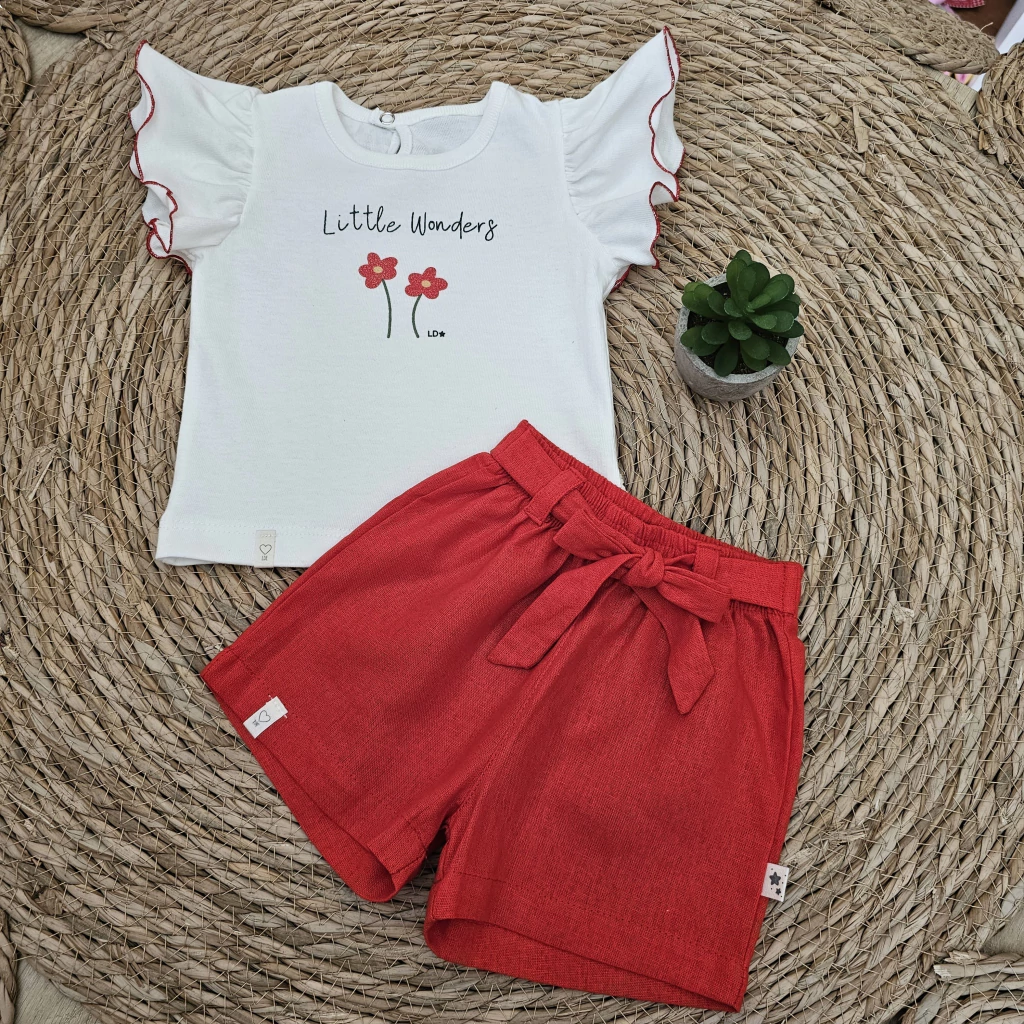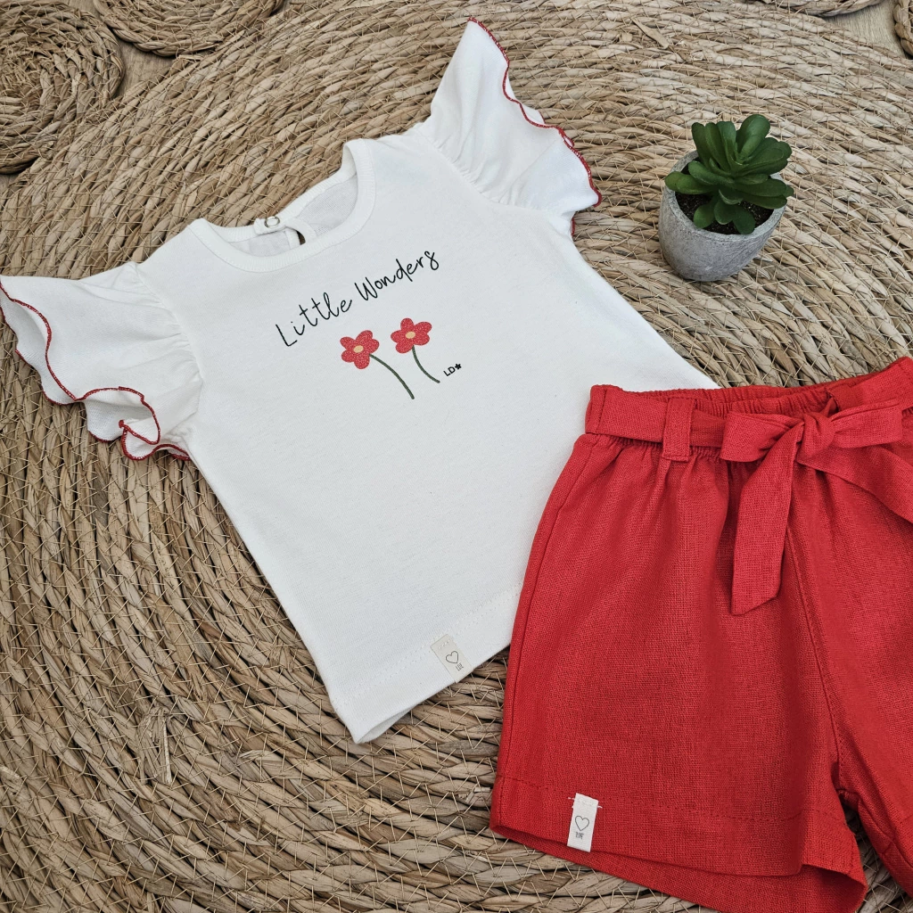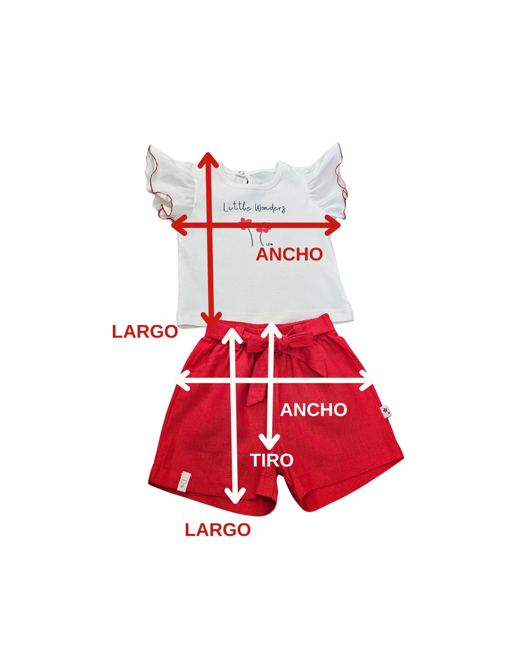 CONUNTO 2 PIEZAS,POSEE REMERA CONFECCIONADA EN ALGODÓN DE PRIMERA CALIDAD CON VOLADO EN MANGA Y VIVO A CONTRA TONO, BROCHE EN ESPALDA,Y DELICADA ESTAMPA DE FLORCITA, SHORT EN LINO CON LAZO, SUPER FRESCO Y CÓMODO. TE INVITAMOS A RECORRER NUESTRO SHOP DONDE VAS A ENCONTRAR GRAN VARIEDAD DE PRENDAS PARA COMPLETAR EL LOOK.