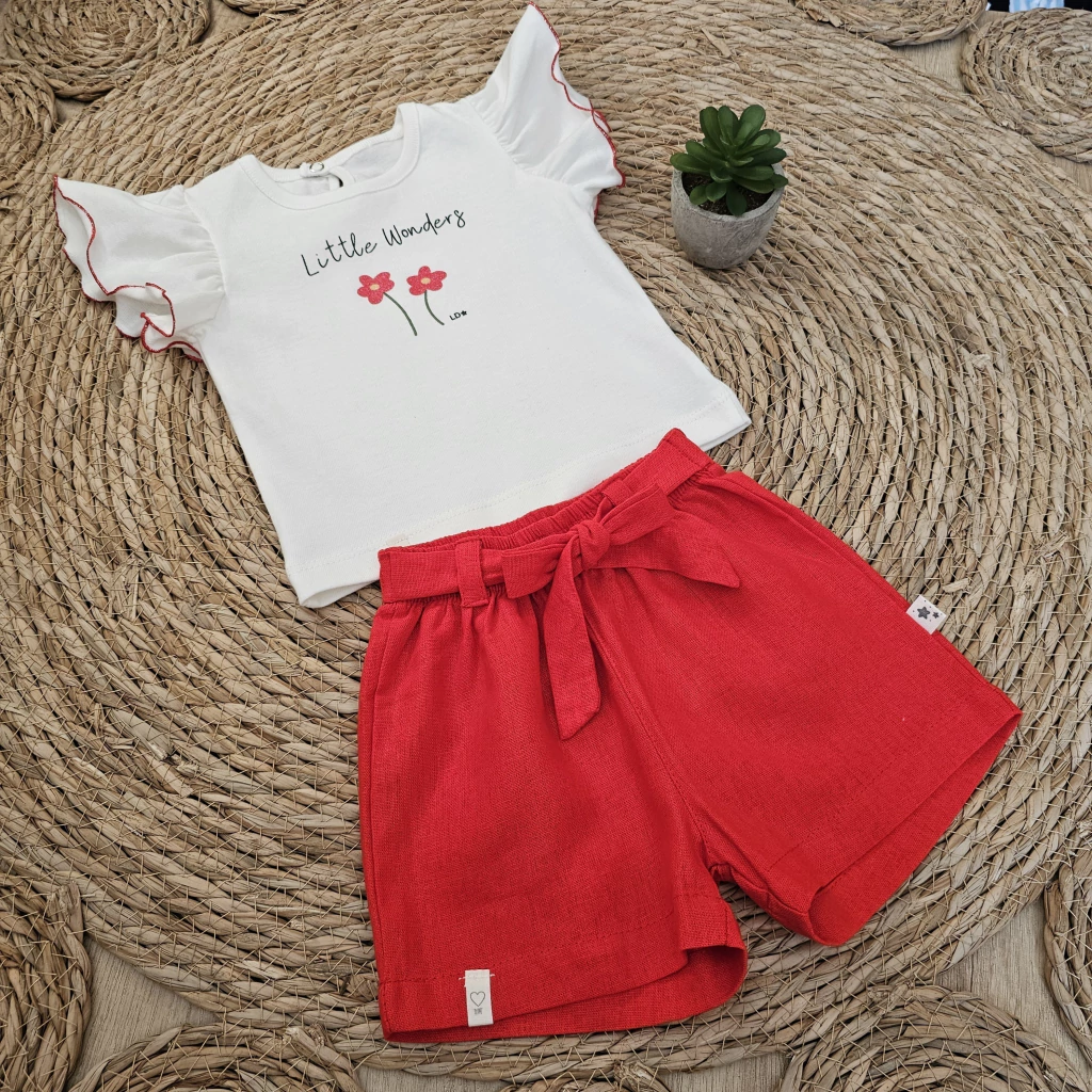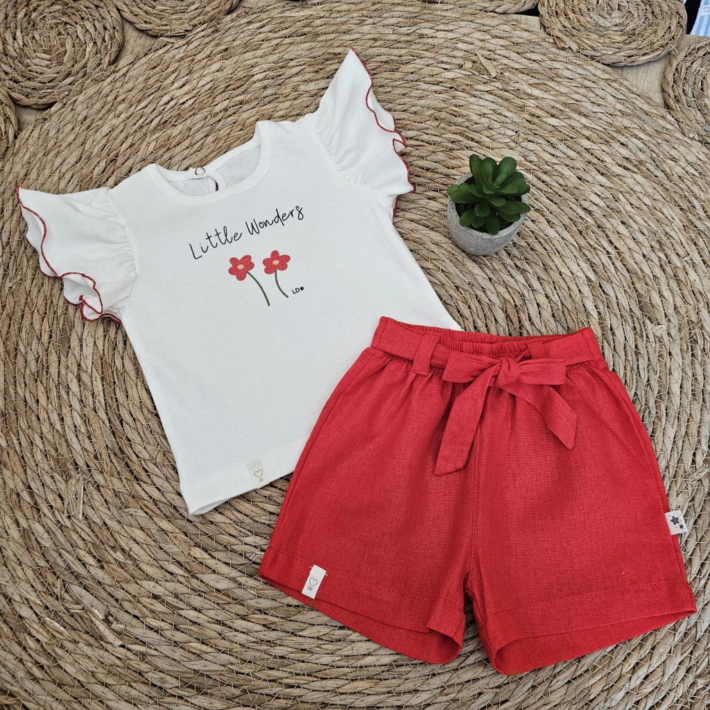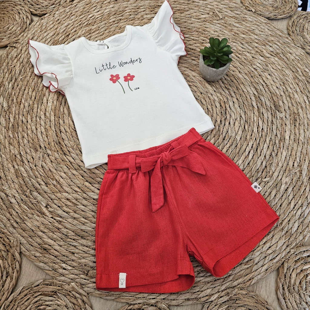 CONUNTO 2 PIEZAS,POSEE REMERA CONFECCIONADA EN ALGODÓN DE PRIMERA CALIDAD CON VOLADO EN MANGA Y VIVO A CONTRA TONO, BROCHE EN ESPALDA,Y DELICADA ESTAMPA DE FLORCITA, SHORT EN LINO CON LAZO, SUPER FRESCO Y CÓMODO. TE INVITAMOS A RECORRER NUESTRO SHOP DONDE VAS A ENCONTRAR GRAN VARIEDAD DE PRENDAS PARA COMPLETAR EL LOOK.