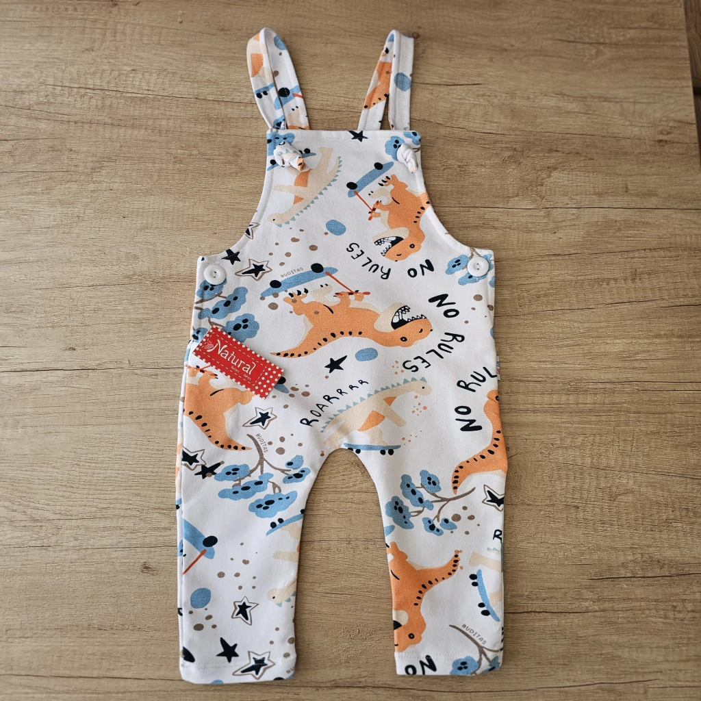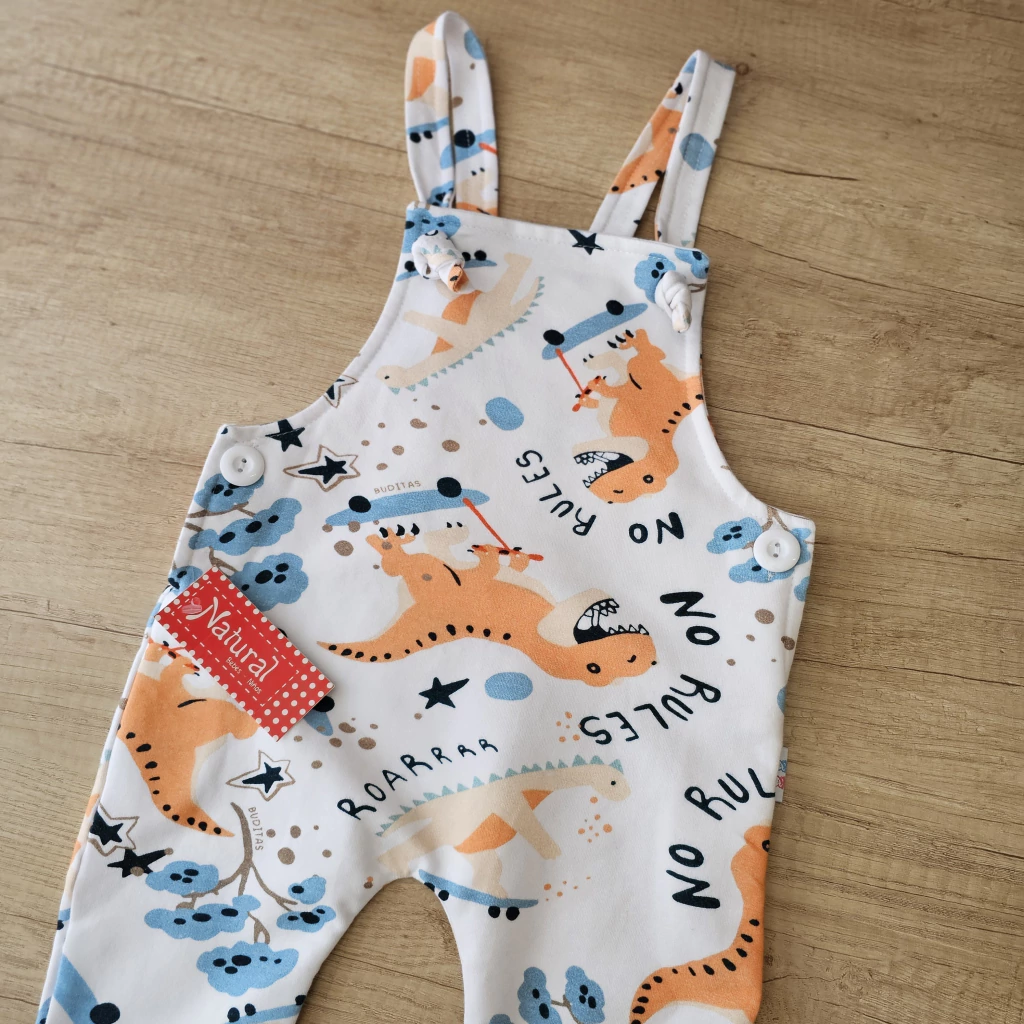 JARDINERO CONFECCIONADO EN TELA DE ALGODÓN RÚSTICO DE PRIMERA CALIDAD, POSEE TIRAS REGULABLES, BOTONES LATERALES Y DIVERTIDA ESTAMPA DE DINOS, UNA PRENDA SUPER CÓMODA Y PRÁCTICA.