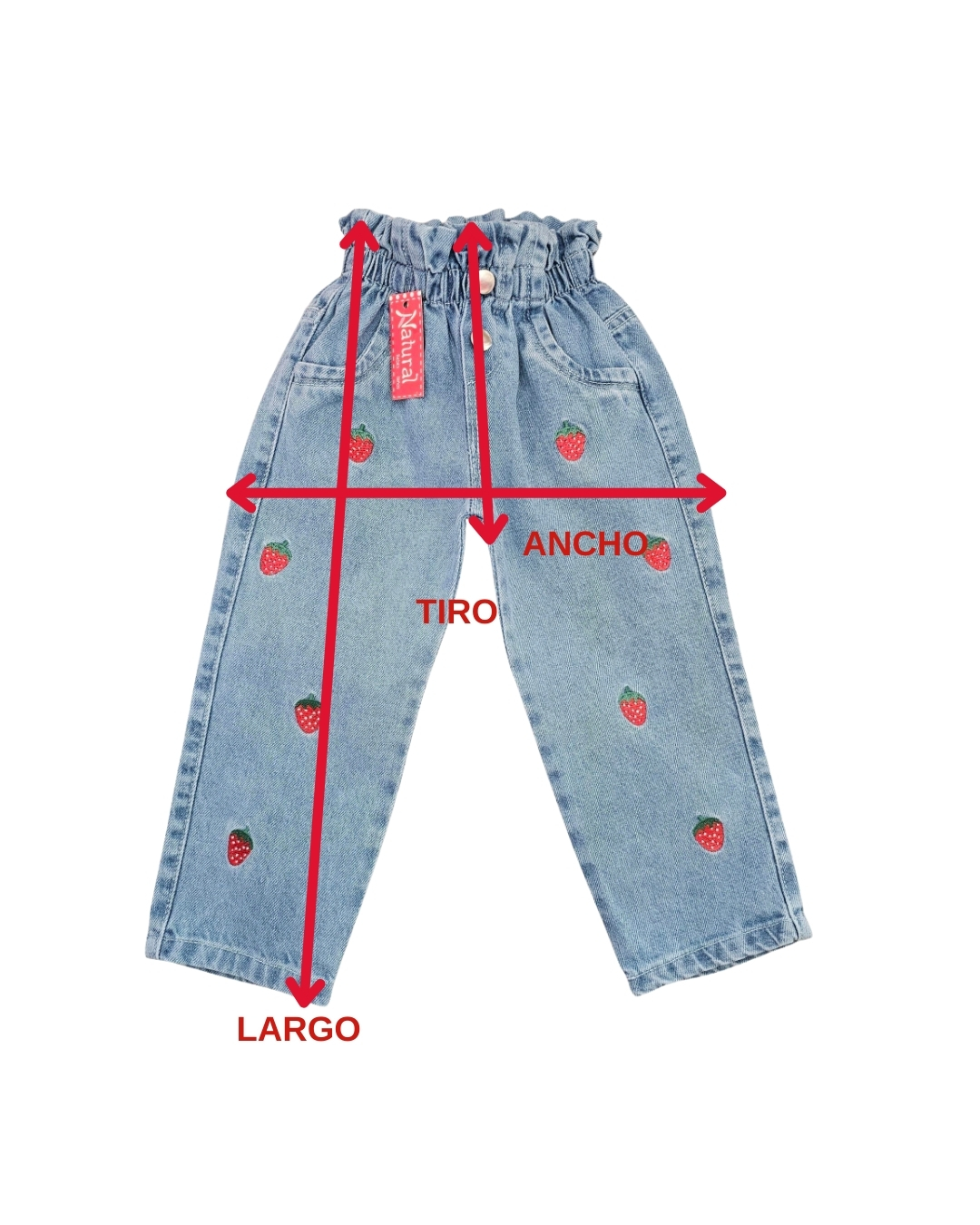 PANTALÓN CONFECCIONADO EN TELA DE JEAN DE PRIMERA CALIDAD, POSEE CINTURA ALTA ELASTIZADA, CORTE MOM, CALCE CÓMODO, ENCANTADOR BORDADO DE FRESITAS Y BOLSILLOS. TE INVITAMOS A RECORRER NUESTRO SHOP DONDE VAS A ENCONTRAR GRAN VARIEDAD DE PRENDAS PARA COMPLETAR EL LOOK.