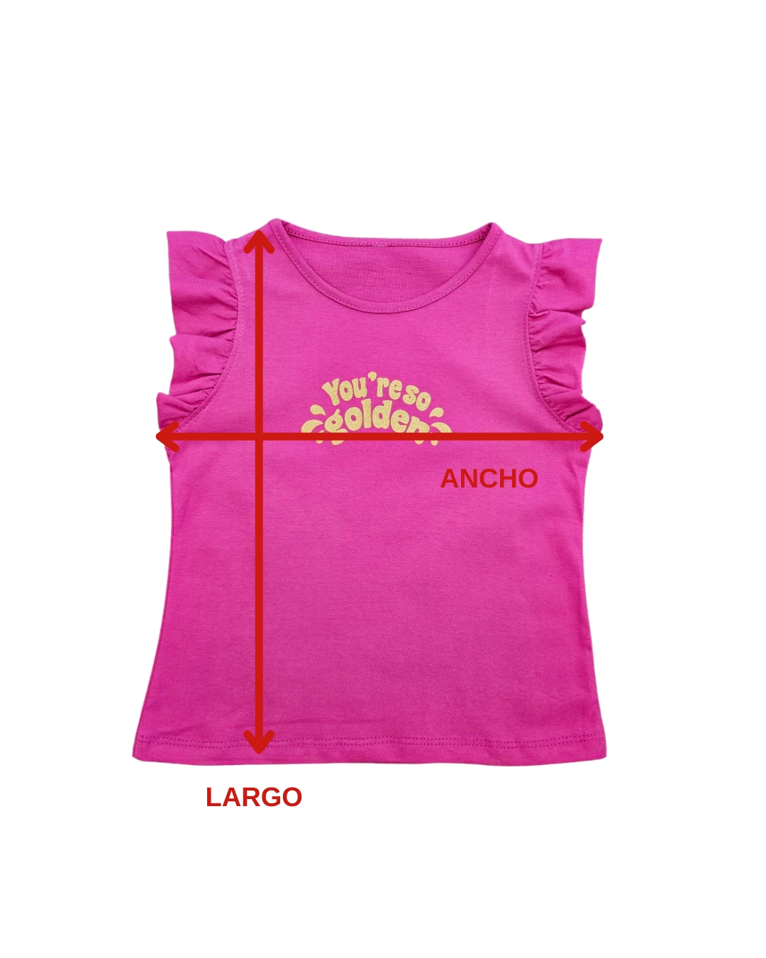 REMERA MANGA CORTA CONFECCIONADA EN TELA DE ALGODÓN DE PRIMERA CALIDAD, POSEE VOLADOS EN MANGA, ESTAMPA CON DELICADO GLITTER, FRESCA Y CÓMODA. TE INVITAMOS A RECORRER NUESTRO SHOP DONDE VAS A ENCONTRAR GRAN VARIEDAD DE PRENDAS PARA COMPLETAR EL LOOK.
