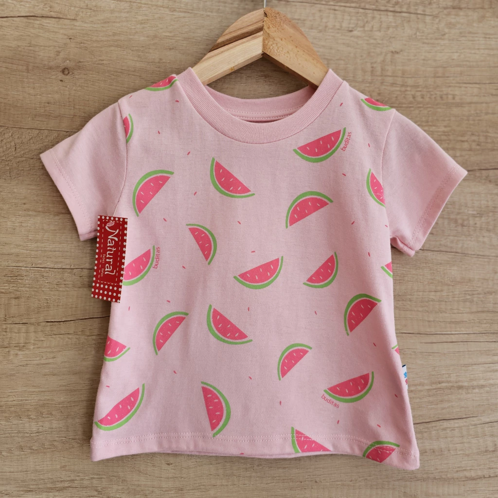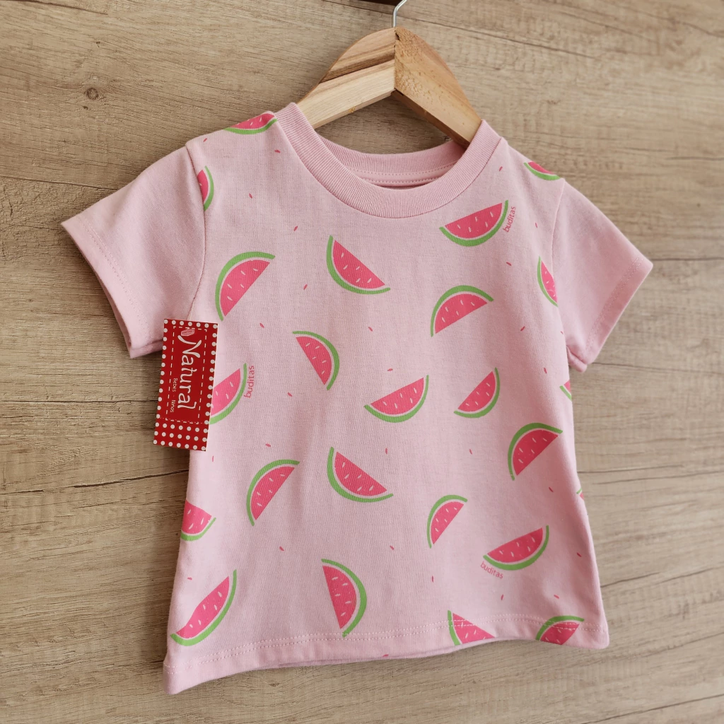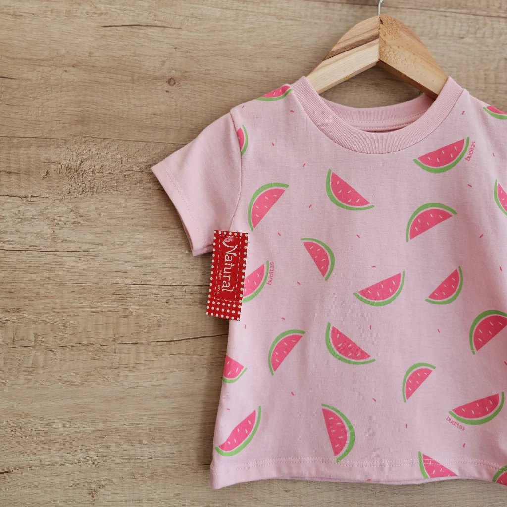 REMERA CONFECCIONADA EN TELA DE ALGODÓN DE PRIMERA CALIDAD, POSEE CUELLO EN RIB Y DIVERTIDO DISEÑO DE SANDIAS.TE INVITAMOS A RECORRER NUESTRO SHOP DONDE VAS A ENCONTRAR GRAN VARIEDAD DE PRENDAS PARA COMPLETAR EL LOOK.