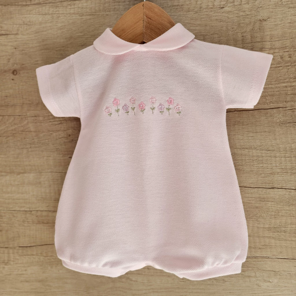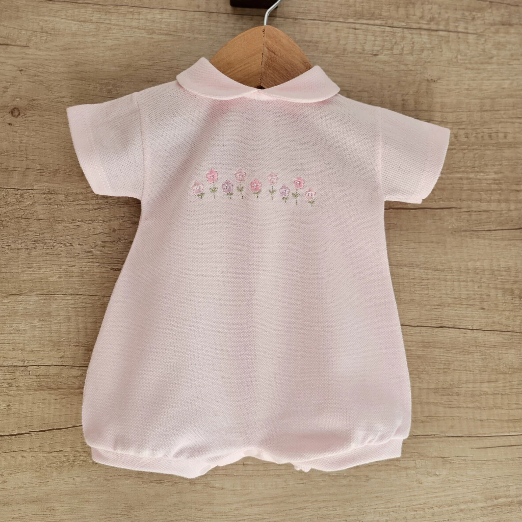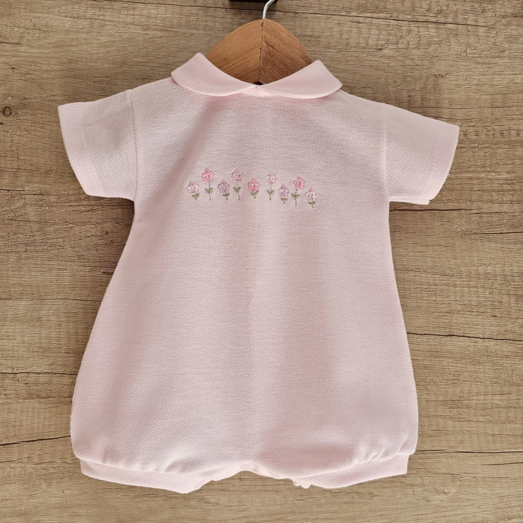 ROMPERS CONFECCIONADO EN TELA DE PIQUÉ DE PRIMERA CALIDAD, CUENTA CON FINO DETALLE DE FLORCITAS BORDADAS, BROCHES EN ESPALDA Y ENTREPIERNA PARA FACILITAR EL CAMBIADO. NOS ENCANTA PARA FOTOGRAFIA NEW BORN , NACIMIENTO Ó BAUTISMO.