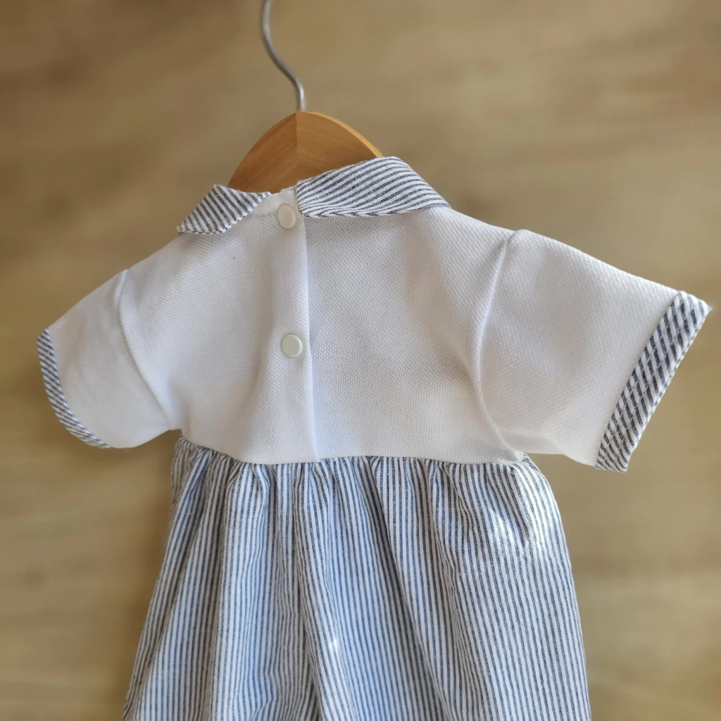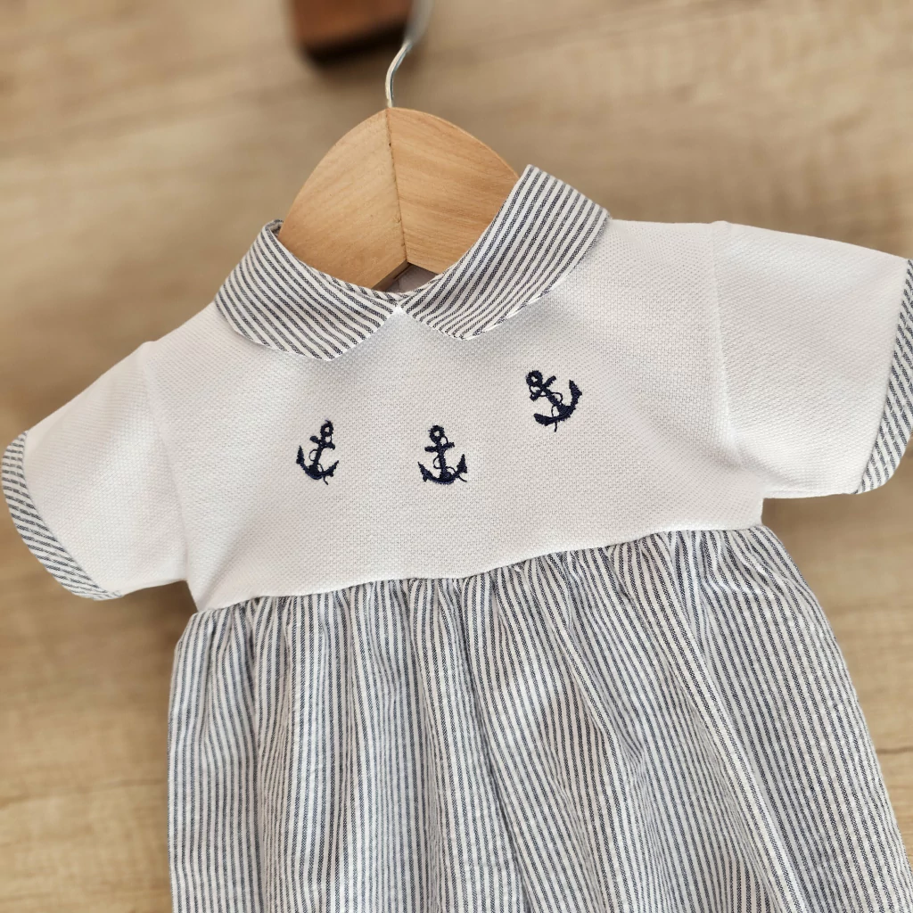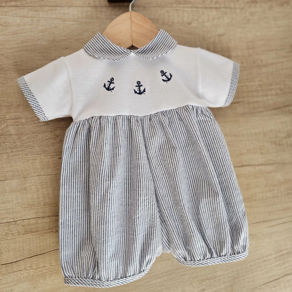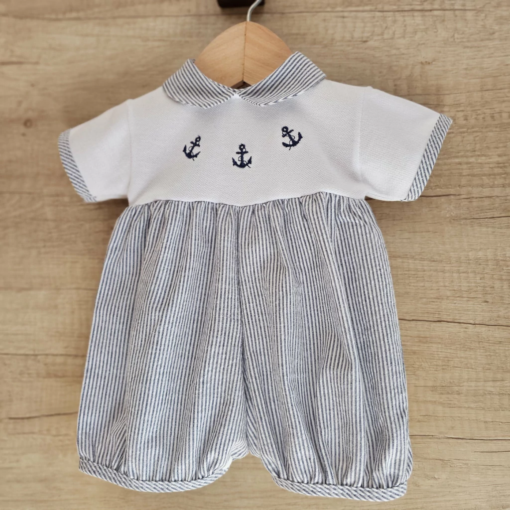 ROMPERS CONFECCIONADO EN CLOQUÉ COMBINADO CON PIQUÉ DE PRIMERA CALIDAD, POSEE DETALLE DE ANCLITAS BORDADAS, BROCHES EN ESPALDA Y ENTREPIERNAS PARA FACILITAR EL CAMBIADO. ESTA PRENDA ES IDEAL PARA LAS PRIMERAS EDADES ,NOS ENCANTA PARA FOTOGRAFIA NEW BORN , NACIMIENTO Ó BAUTISMO .