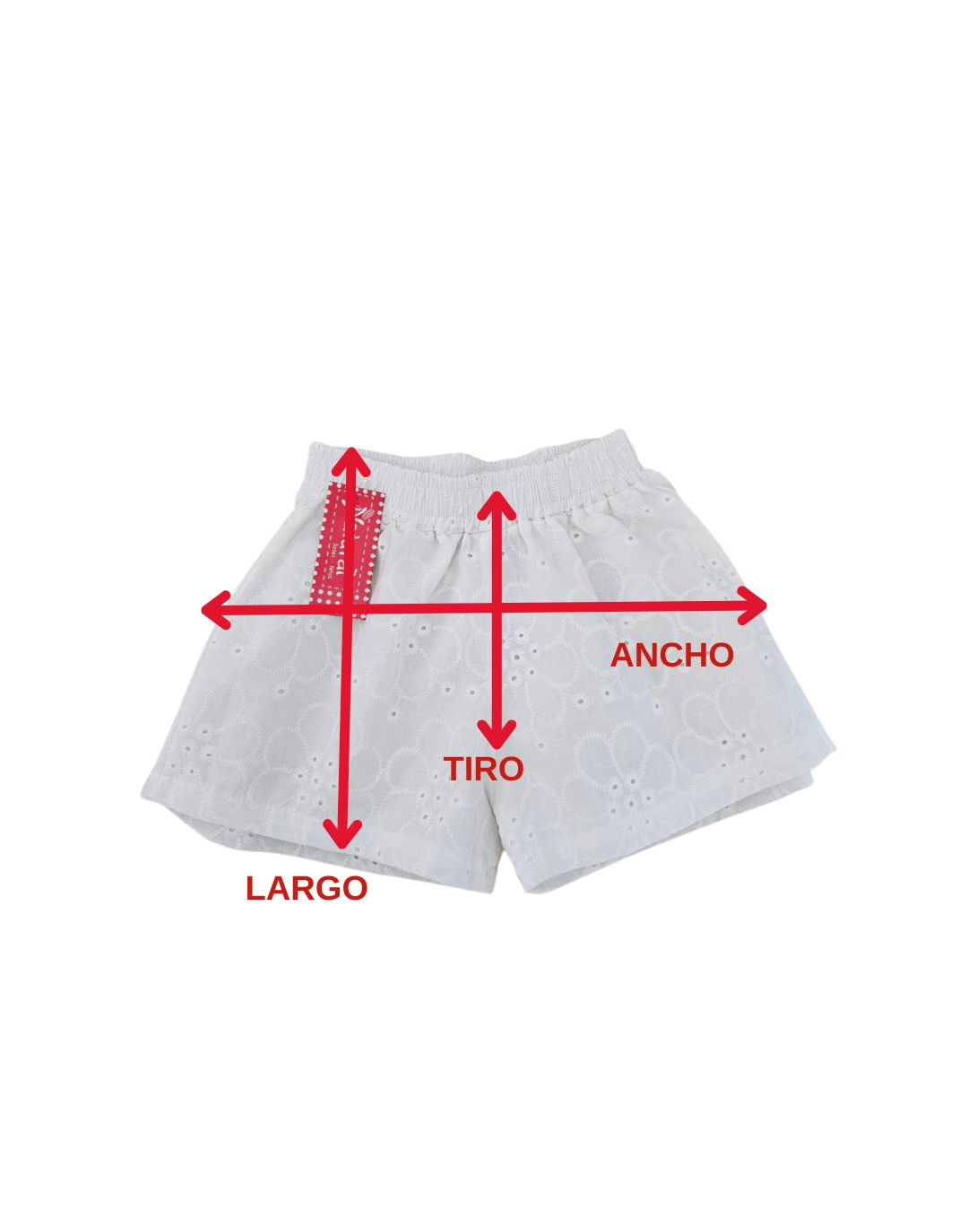 SHORT CONFECCIONADO EN TELA DE BRODERIE DE PRIMERA CALIDAD, POSEE CINTURA ELASTIZADA, FORRO INTERNO, UN DISEÑO DELICADO Y FRESCO. IDEAL PARA TODA OCASIÓN. TE INVITAMOS A RECORRER NUESTRO SHOP DONDE VAS ENCONTRAR GRAN VARIEDAD DE PRENDAS PARA COMPLETAR EL LOOK.