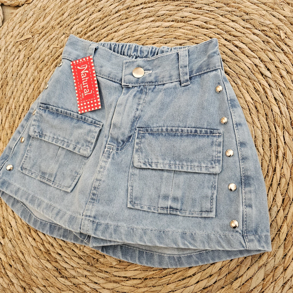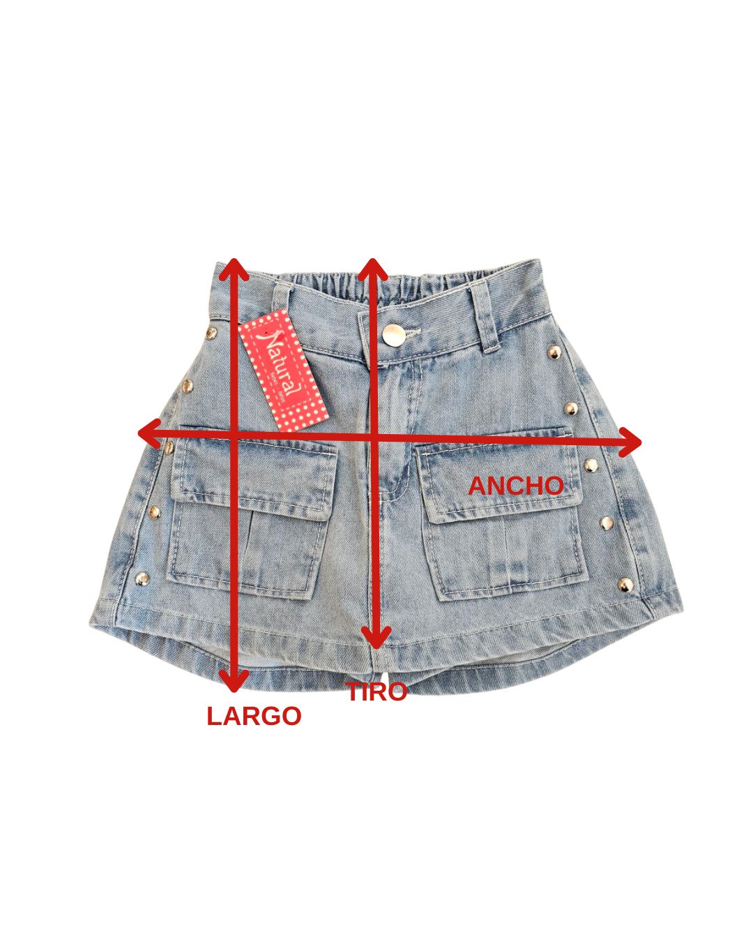 SHORT POLLERA CONFECCIONADO EN TELA DE JEAN DE PRIMERA CALIDAD, POSEE DETALLE DE TACHAS EN LATERALES Y BOLSILLOS TIPO CARGO, MEDIA CINTURA ELASTIZADA Y BOLSILLOS TRASEROS. TE INVITAMOS A RECORRER NUESTRO SHOP DONDE VAS A ENCONTRAR GRAN VARIEDAD DE PRENDAS PARA COMPLETAR EL LOOK.