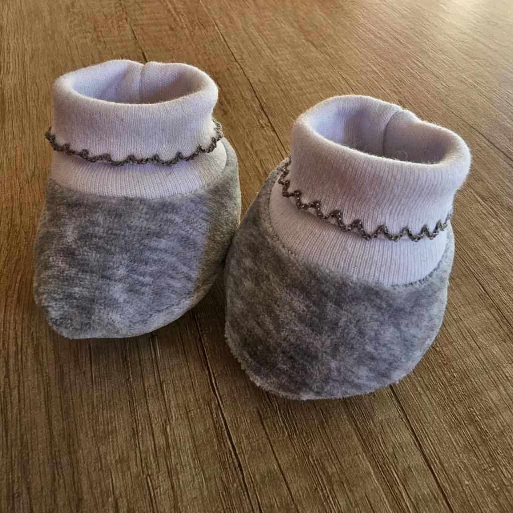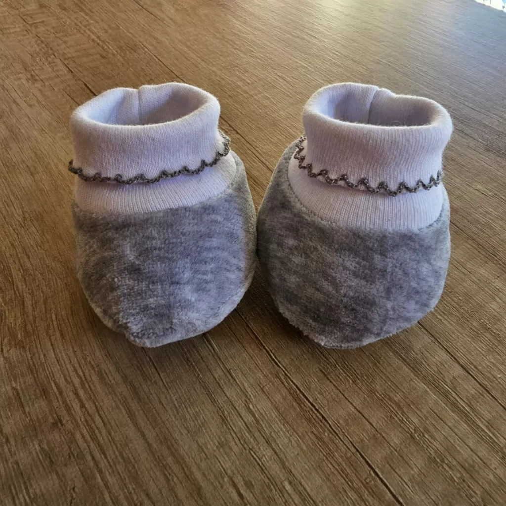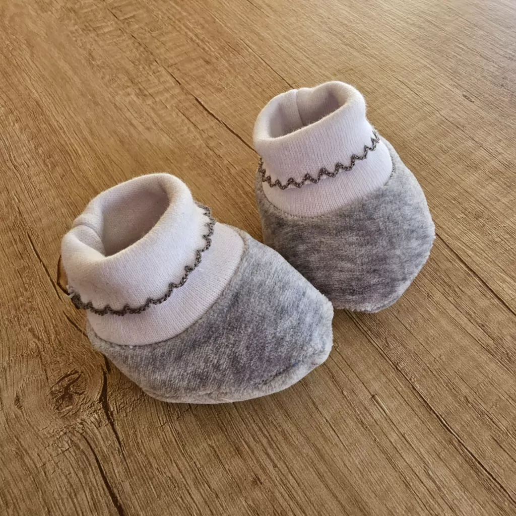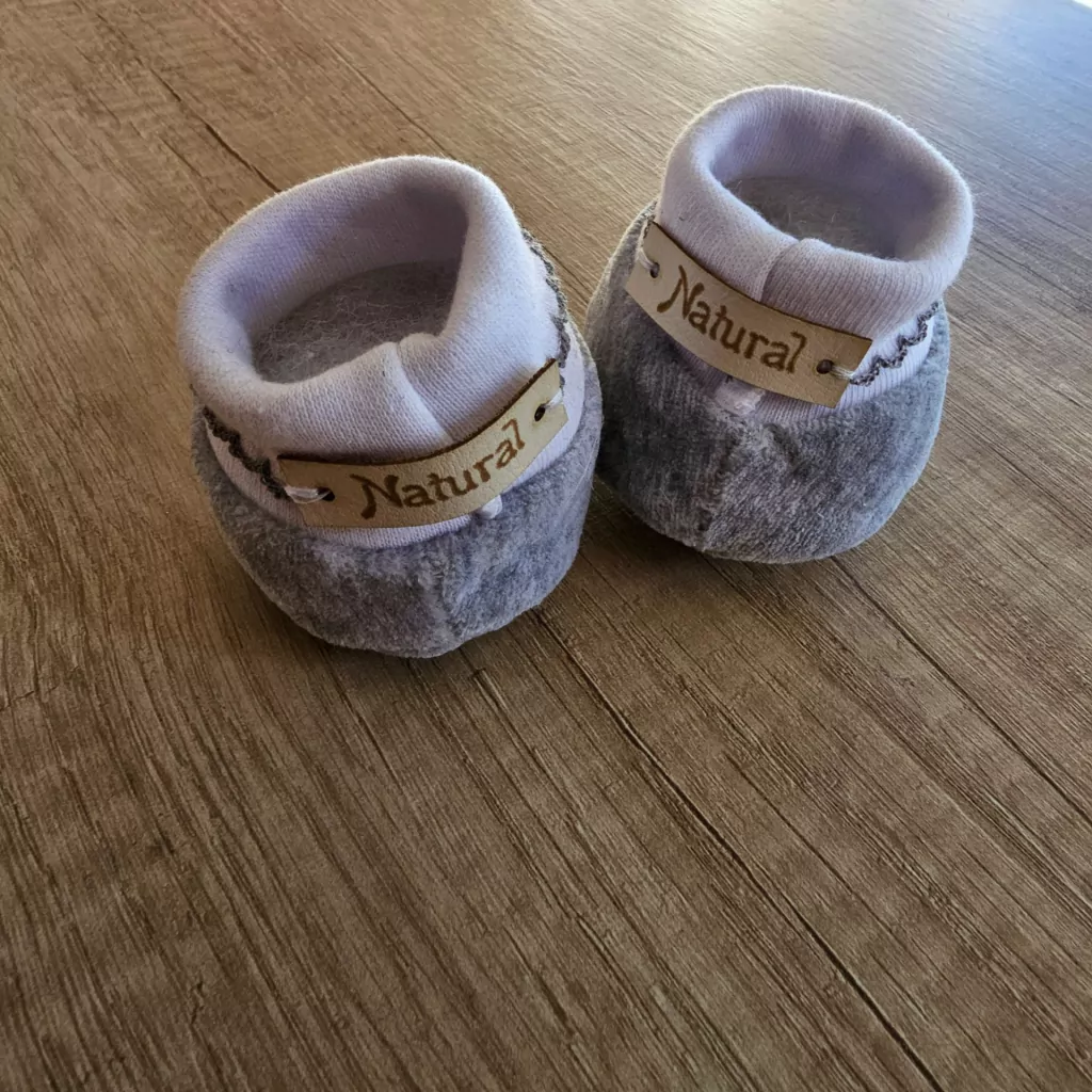 ZAPATITO REALIZADO EN PLUSH DE ALGODÓN ,CUENTA CON PUÑO EN DOBLE ALGODÓN EN FORMA DE BOTITA ,NO SE SALEN Y ESO ES LO MEJOR! CON FINA TERMINACIÓN DE BORDADO PICOT. TALLE 0 A 3 MESES